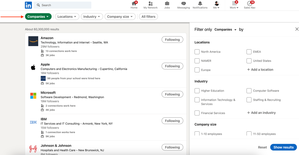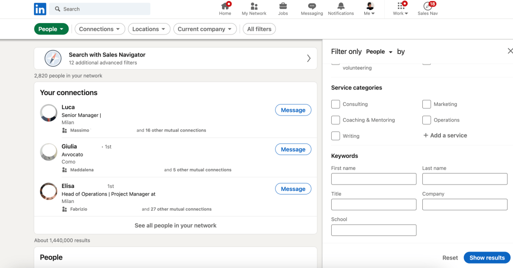 In primis perchè su questa piattaforma è possibile seguire, cercare e contattare non solo persone, ma anche aziende, avendo a disposizione diversi filtri (anche nella versione gratuita).